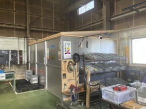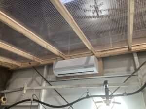 そのため、作業スペースは遮光のカーテンやパネルで完全に区切る必要があり、以前は製品によってパネル可動できるようにしていたのですが、この度、温度管理ができるようパネルを木枠で固定し、中にエアコンをつけました。
